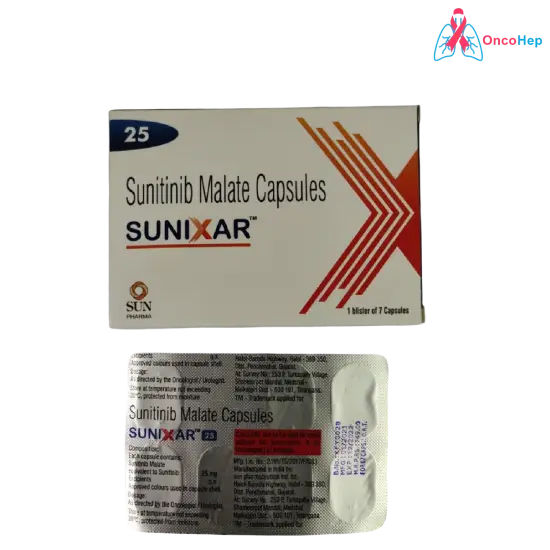 Sutib Capsule (Sunitinib 50mg/25mg/12.5mg) is an oral targeted therapy used to treat advanced kidney cancer (renal cell carcinoma), gastrointestinal stromal tumors (GIST), and pancreatic neuroendocrine tumors.