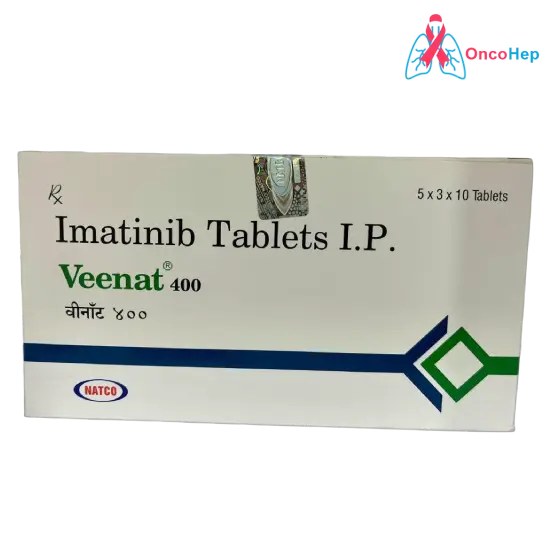 Veenat Tablets (Imatinib 400mg) are an oral targeted therapy used to treat chronic myeloid leukemia (CML), gastrointestinal stromal tumors (GIST), and other cancers with specific genetic mutations.